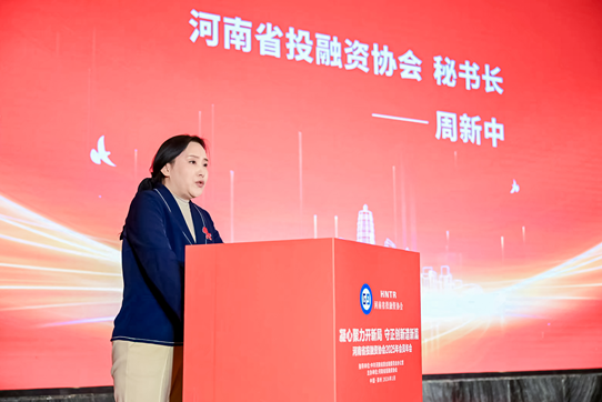 河南省投融资协会秘书长周新中作协会2025年度工作报告。她在报告中表示,2025是协会承压奋进、务实笃行的一年。我们在砥砺前行中收获成长,在服务奉献中践行使命。协会以党建为引领,筑牢思想根基;搭建交流平台,促进会员合作;优化服务举措,助力企业发展;加强自身建设,提升协会凝聚力。